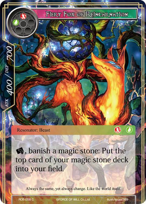 , : Search your deck and/or hand for a card named ""Fiery Fox of Reincarnation"" and put it into the field. If you searched your deck, shuffle it.
