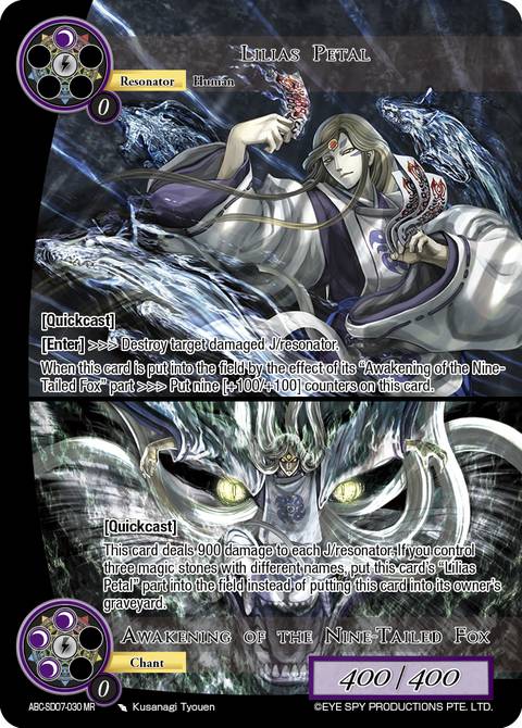 This card deals 900 damage to each J/resonator. If you control three or more magic stones with different names, put this card's ""