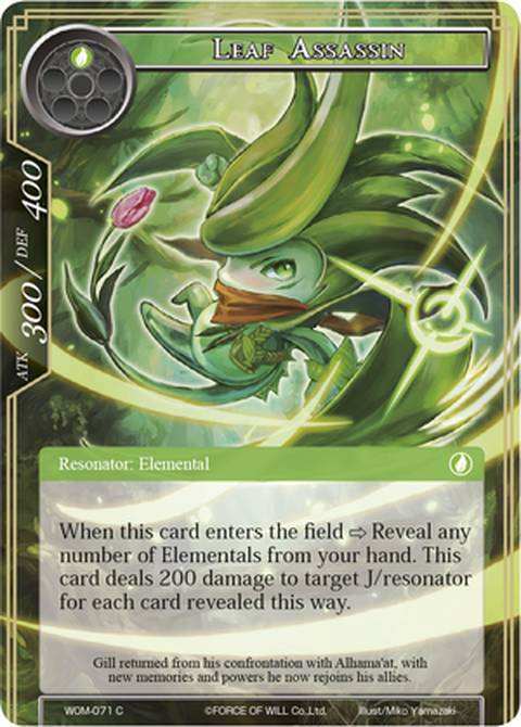 When this card enters the field ⇒ Reveal any number of Elementals from your hand. This card deals 200 damage to target J/resonator for each card revealed this way.